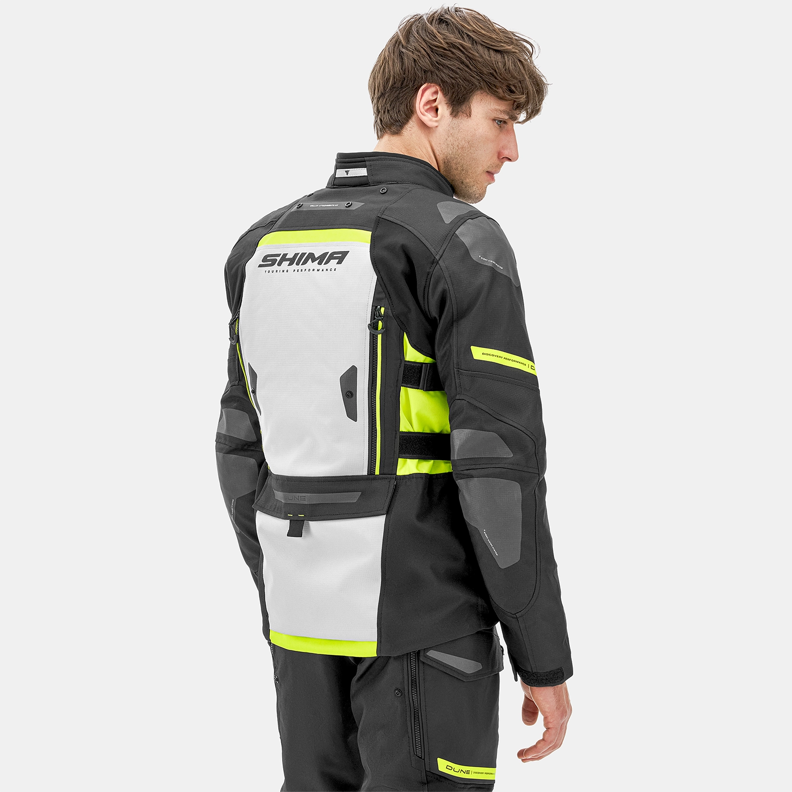 Avete voglia di una gita spontanea fuori città? La SHIMA DUNE è una giacca che vi seguirà! È stata progettata per i motociclisti per i quali le escursioni in moto non sono solo un'occasione di relax, ma anche un'espressione di stile personale. Questa giacca da turismo a tre strati è la soluzione ideale per chi apprezza sia la funzionalità che l'estetica, oltre che la tecnologia avanzata. Il sistema riflettente multiplo Night Vision™ aumenta la visibilità dopo il tramonto, mentre l'ampia gamma di colori consente di abbinare la giacca al proprio stile e alla propria moto. La giacca DUNE presenta una struttura a tre strati - strato di base, membrana impermeabile NextDry™ e gilet riscaldante - per garantire versatilità e adattamento alle mutevoli condizioni atmosferiche. Il sistema H3 Pro consente un rapido aumento del flusso d'aria durante la guida, mentre i pannelli di ventilazione multipli sul petto, sulla schiena e sugli avambracci garantiscono una circolazione perfetta nelle giornate più calde. Grazie al tessuto esterno ripstop rinforzato, la giacca SHIMA DUNE è estremamente resistente a strappi e abrasioni. DuoLayer Protection™ su spalle e gomiti e le avanzate protezioni GFLEXX di livello 2 per schiena, spalle e gomiti assicurano una sicurezza ai massimi livelli. Progettata all'insegna del comfort, la giacca da moto DUNE offre numerose opzioni di regolazione - vita, petto, bicipiti, spalle e polsi - per adattarsi facilmente a qualsiasi corporatura. I morbidi bordi del colletto e i pannelli elasticizzati migliorano il comfort, mentre le pratiche tasche cargo aumentano la funzionalità. Per chi desidera creare un ensemble completo da turismo, sono disponibili i pantaloni DUNE, perfettamente abbinati alla giacca. SHIMA DUNE, disponibile nelle taglie S-4XL.