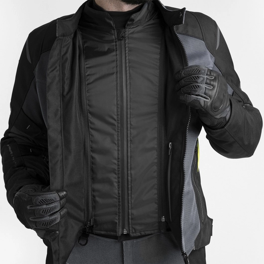 La giacca RUSH 2.0 VENTED è una rivisitazione moderna della ventilazione! Ampi pannelli in rete sul petto, sugli avambracci e sulla schiena assicurano un flusso d'aria ottimizzato durante la guida. Il comfort termico della RUSH 2.0 VENTED è nelle vostre mani: regolate la temperatura scegliendo le fodere o godetevi la piena traspirabilità della giacca senza di esse. La membrana impermeabile NextDry™ non solo garantisce un'eccellente protezione dalla pioggia. Funge anche da efficace frangivento, uno strato aggiuntivo per fermare l'afflusso d'aria. Con la RUSH 2.0 VENTED, viaggiare in qualsiasi condizione diventa un vero piacere!
