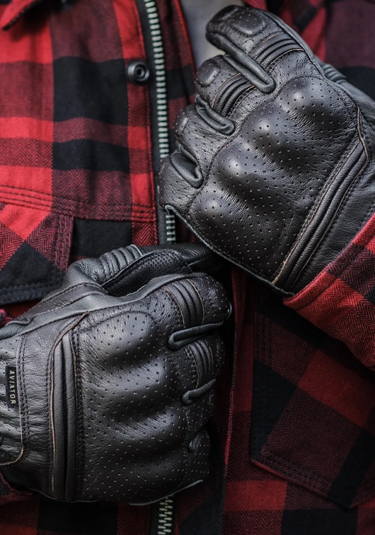 L'AVIATOR è un guanto classico progettato con pannelli flessibili e una costruzione delle dita precurvata per garantire funzionalità e comfort. La protezione principale delle nocche e gli assorbitori d'urto sulle dita, così come i pannelli di rinforzo e la pelle extra sul fianco, garantiscono un'eccellente protezione. Per un maggiore comfort, l'AVIATOR è dotato di una patch antiscivolo per aumentare la precisione nell'azionamento della maniglia dell'acceleratore. Grazie alla chiusura in micro-velcro e al cinturino a strappo, il guanto AVIATOR si adatta facilmente alla mano. Le ampie superfici perforate assicurano il massimo flusso d'aria. Ispirati all'aviazione, i guanti sono stati perfezionati in termini di stile e funzionalità. La punta dell'indice è rifinita con un pannello che consente di utilizzare lo smartphone senza togliere il guanto. AVIATOR è il modo perfetto per valorizzare il vostro stile con dettagli in stile vintage.