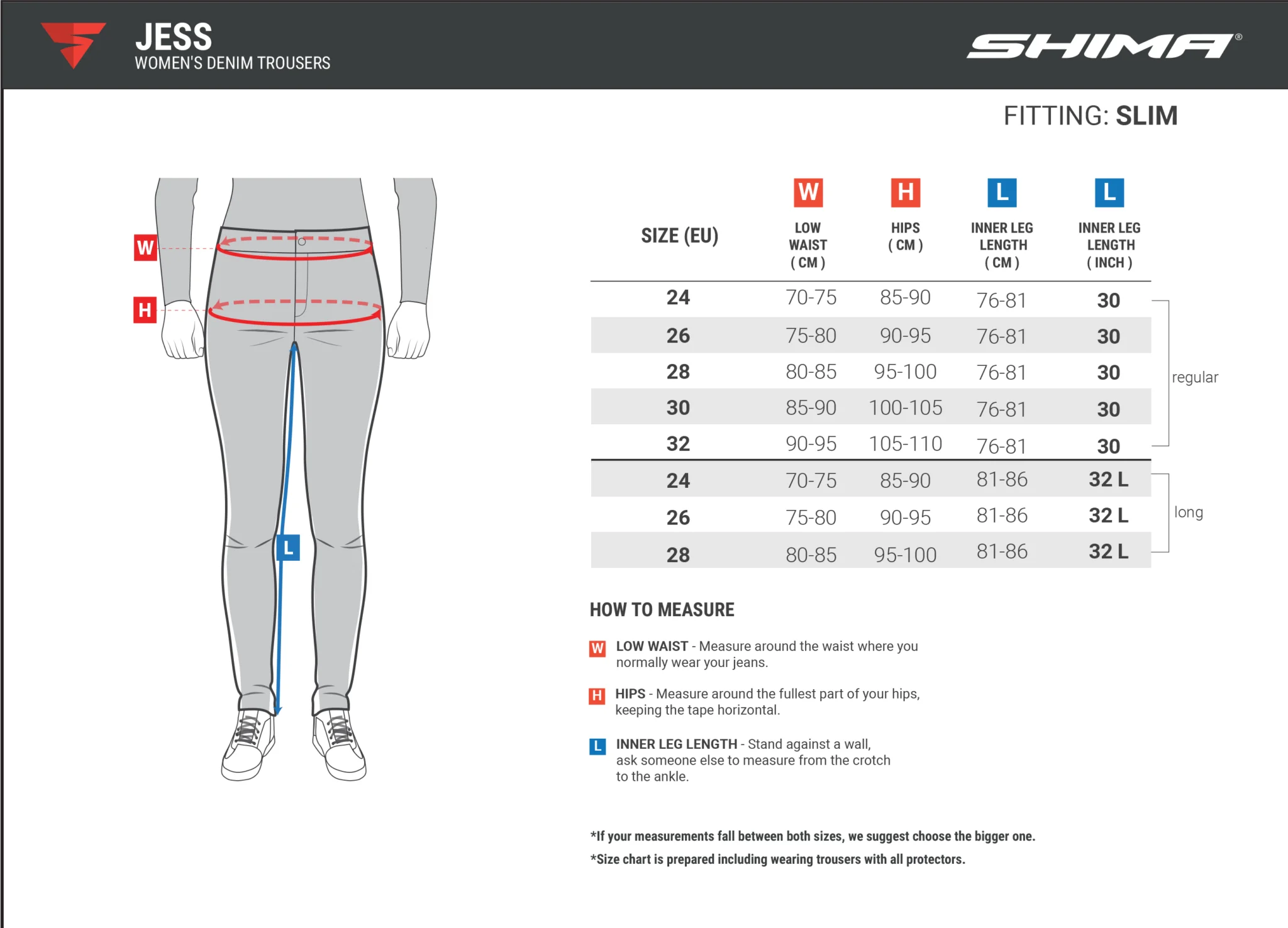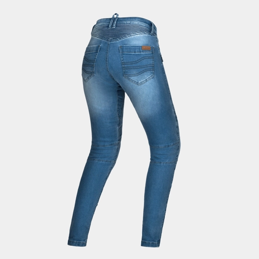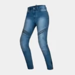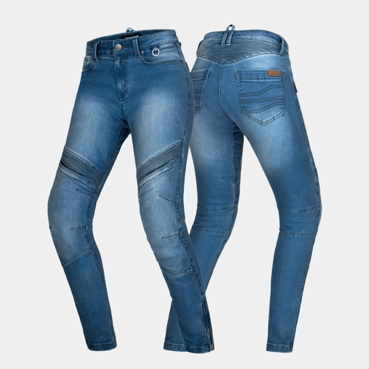 I JESS sono jeans da moto moderni e perfettamente aderenti. Sono dotati di una speciale costruzione del cavallo Comfort+™ che garantisce il massimo comfort di guida. Lo strato interno rimovibile in Kevlar® fornisce un'ulteriore protezione dall'abrasione ed è resistente alle alte temperature. La forma dei pantaloni è adattata alla posizione della moto con pannelli elastici aggiuntivi nella zona del coccige e del ginocchio. Le protezioni per le ginocchia sono collocate in tasche con accesso dall'esterno che consentono di trasformare facilmente i pantaloni in jeans casual, ad esempio per il lavoro. I jeans sono dotati di elementi riflettenti per aumentare la visibilità al buio e di un anello con fibbia a D sopra la tasca anteriore per rimuovere facilmente il portachiavi. Sul retro dei pantaloni è presente uno speciale passante per un rapido collegamento con le giacche SHIMA.