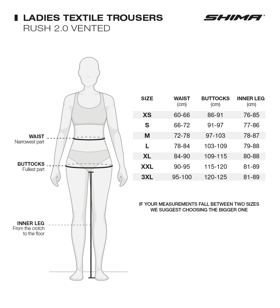 I RUSH 2.0 VENTED Lady sono pantaloni in tessuto a 2 strati per le donne che amano guidare la propria moto in qualsiasi condizione atmosferica. Questo affidabile modello è stato rinnovato per offrirvi ancora più comfort e protezione. Gli ampi pannelli in rete sulle cosce e sulla schiena assicurano il massimo flusso d'aria, anche nelle giornate più calde. La membrana impermeabile NextDry™ vi proteggerà dal freddo, dal vento e dalla pioggia. La RUSH 2.0 VENTED Lady è dotata di un set di protezioni certificate AirForce™ by SHIMA di livello 1 per le ginocchia. Inoltre, l'eccellente durata e la resistenza agli strappi sono garantite dal tessuto di rinforzo posizionato nelle aree critiche. Per un comfort totale, i pantaloni sono dotati di regolazione della larghezza delle gambe e della vita tramite cerniera e gancio. Questo vi permette di adattarli perfettamente alle vostre esigenze e preferenze. È possibile combinare la RUSH 2.0 VENTED Lady con una giacca dedicata della stessa collezione. Ciò è possibile in modo semplice e veloce grazie al sistema di cerniere di collegamento. Il modello è disponibile in due colori e in un'ampia gamma di taglie.
