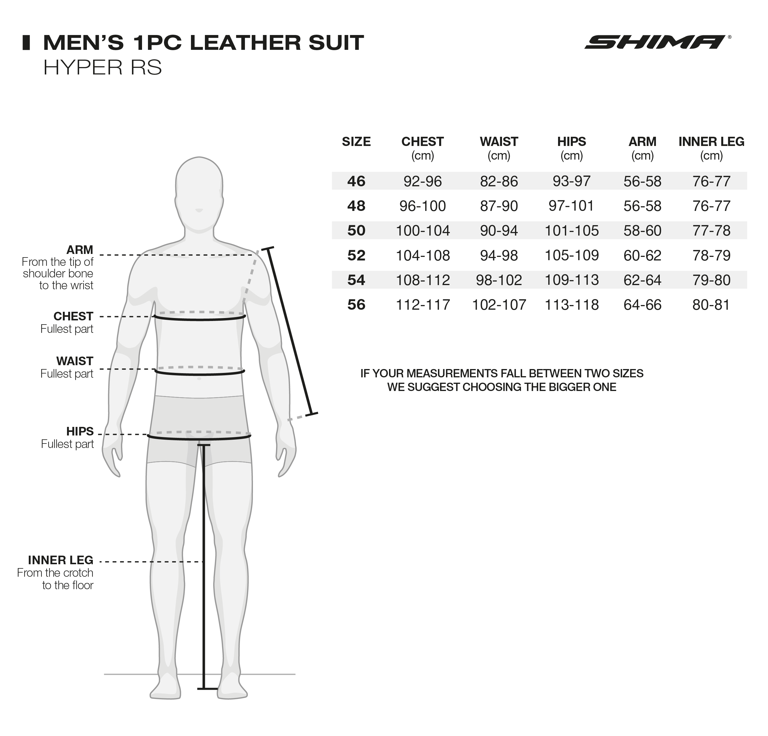 HYPER RS garantisce un livello di sicurezza AAA grazie alla pelle bovina premium A+, alle cuciture triple e doppie e alla tecnologia DuoLayer Protection™, un doppio strato di pelle nelle aree di spalle, gomiti, glutei, fianchi e ginocchia. Contribuiscono al massimo livello di sicurezza anche le protezioni avanzate di livello 2 per schiena e gomito e di livello 1 per spalle, ginocchia e fianchi. Le protezioni per gomiti, spalle e ginocchia sono regolabili con chiusure a strappo per una facile vestibilità. I cursori sostituibili per i gomiti e un set di cursori per le ginocchia offrono una protezione aggiuntiva. I pannelli di rinforzo e gli ampi cursori in materiale sintetico su spalle e ginocchia aumentano la sicurezza, anche durante le corse più intense.